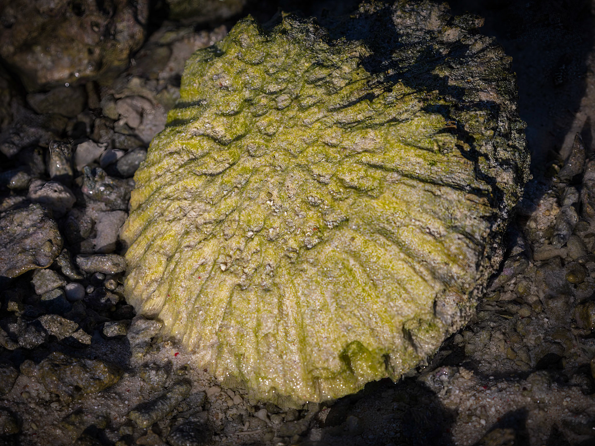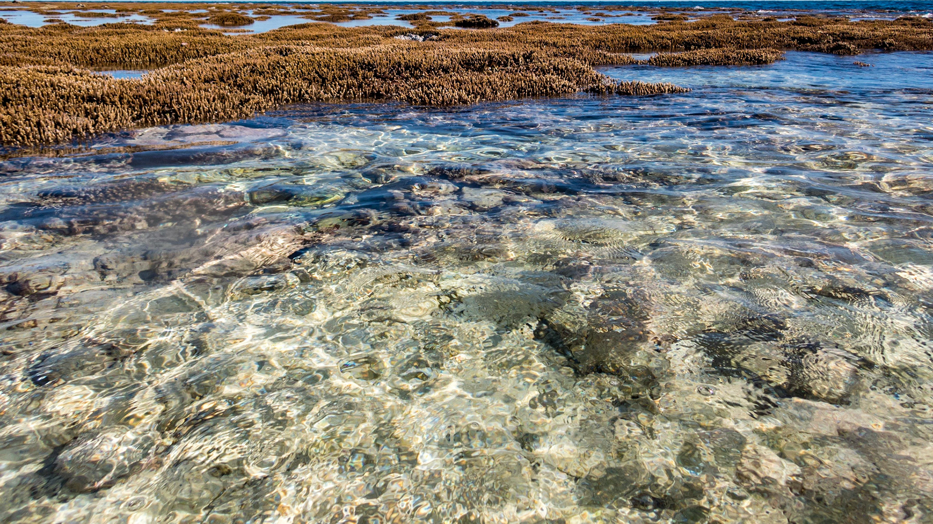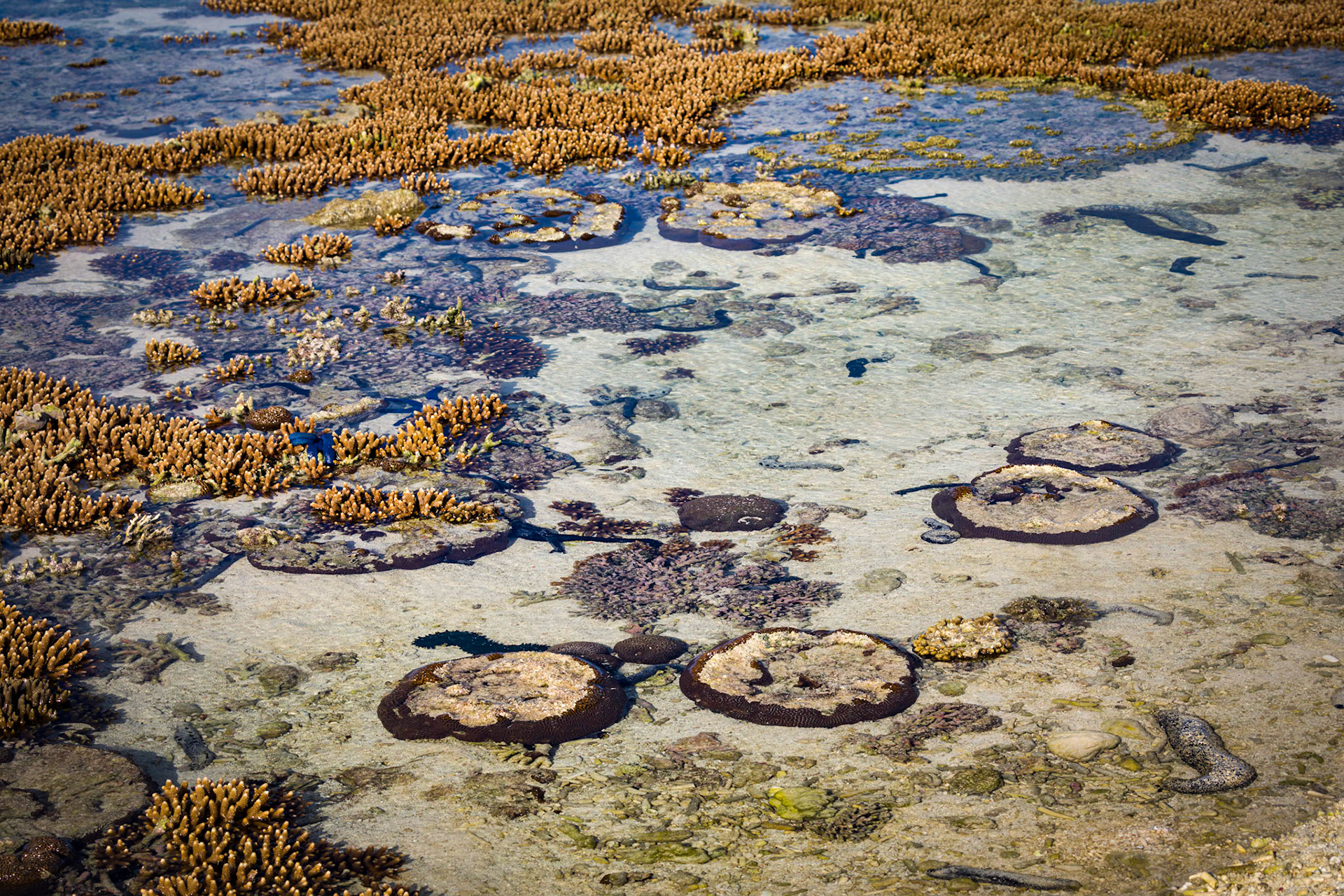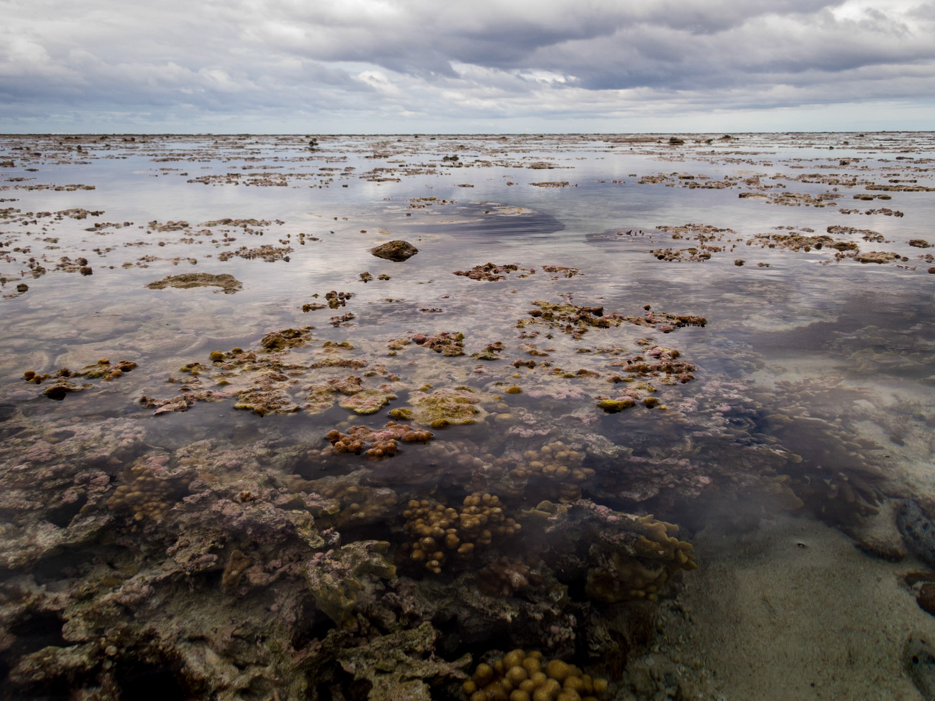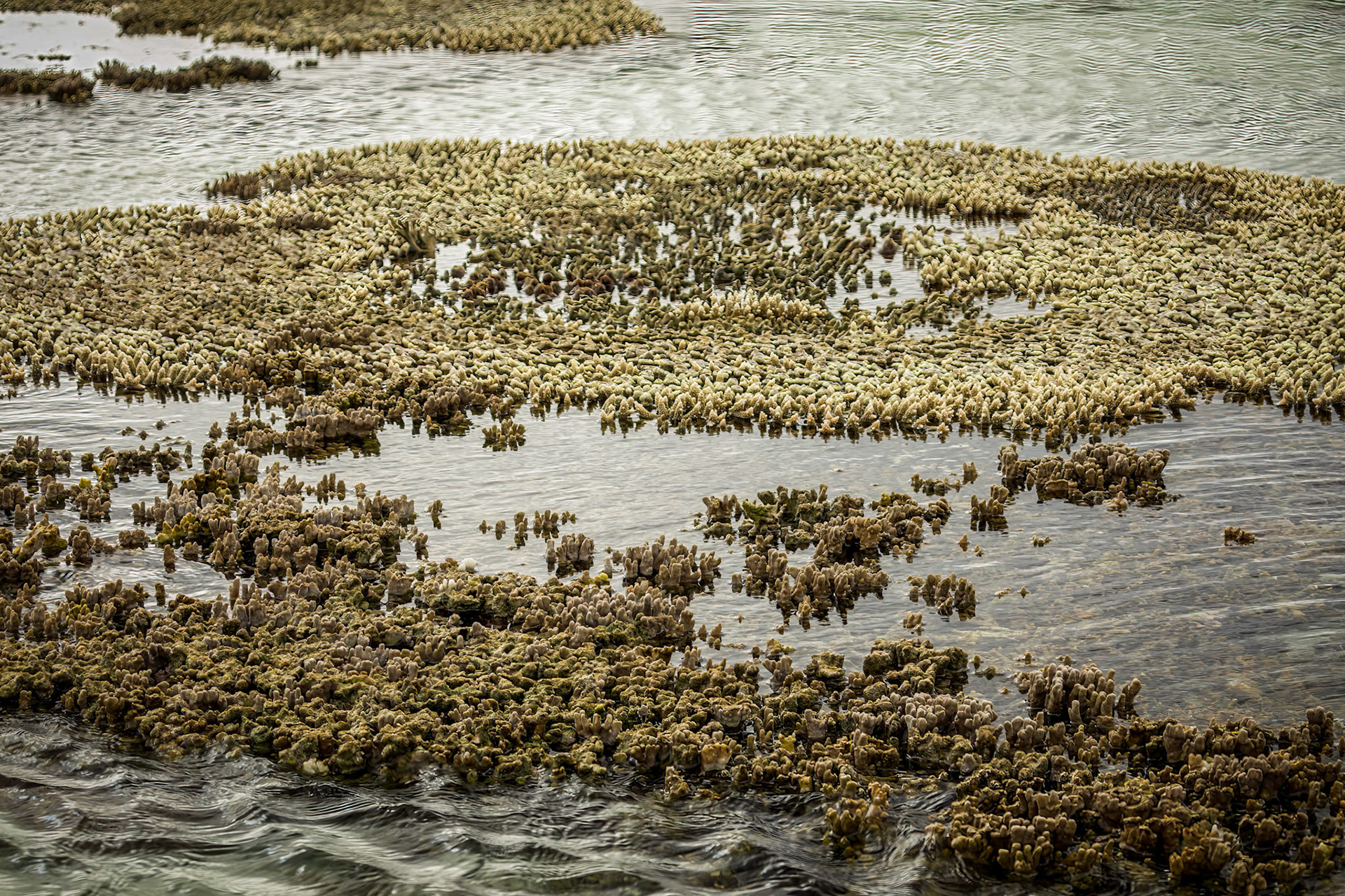 LEI, exposed lagoon coral at low tide